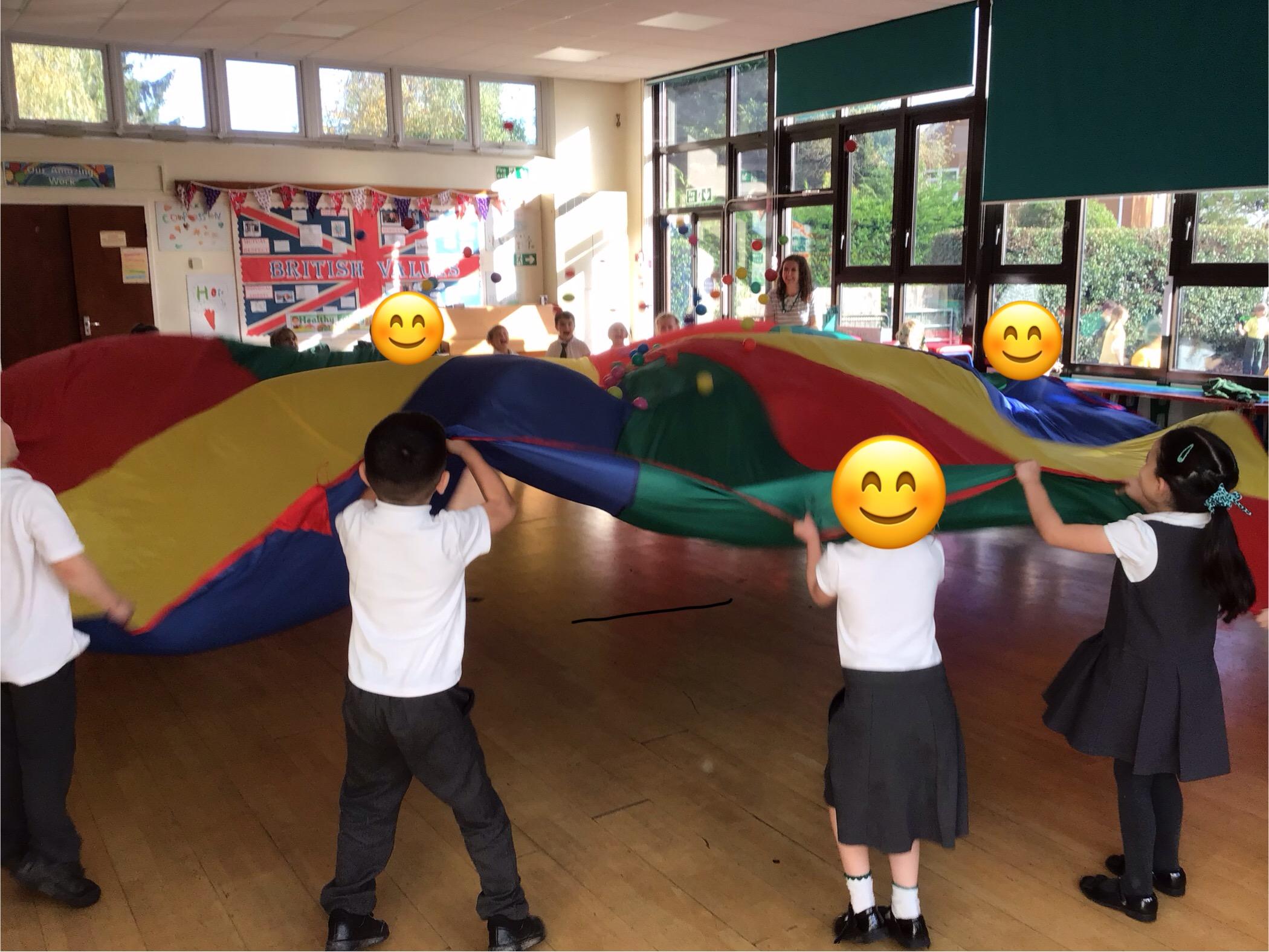 We had great fun playing lots of busy and noisy games with the giant parachute! We especially loved trying to get all of the balls to fly off!