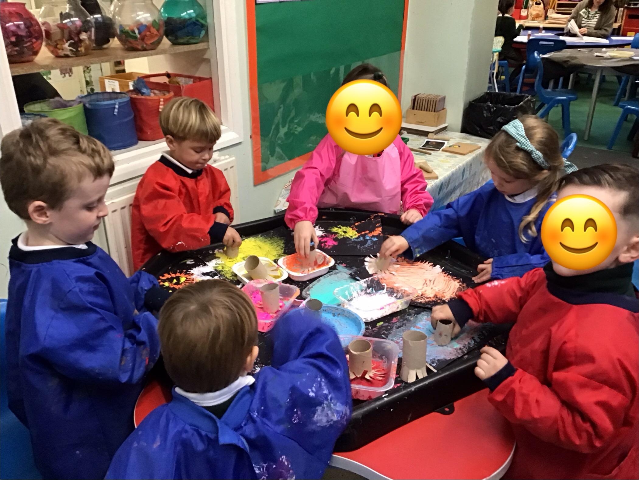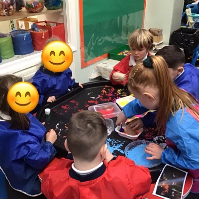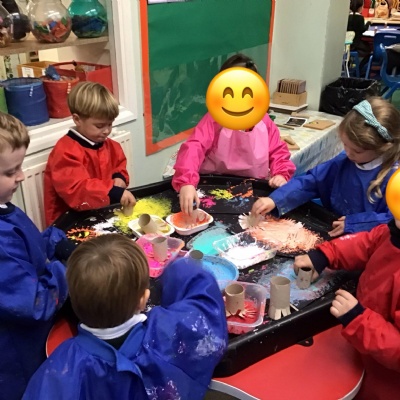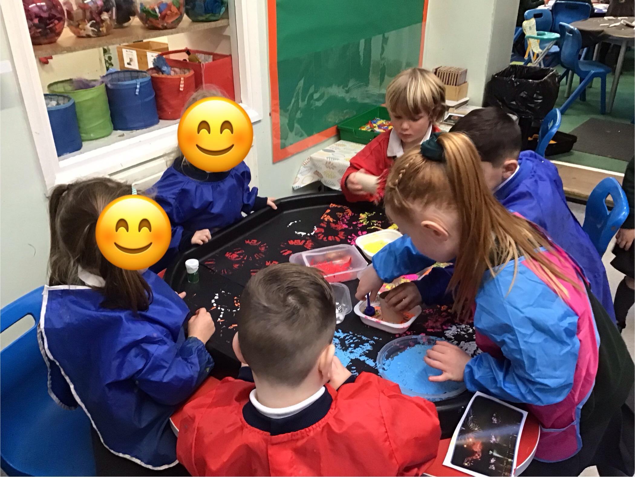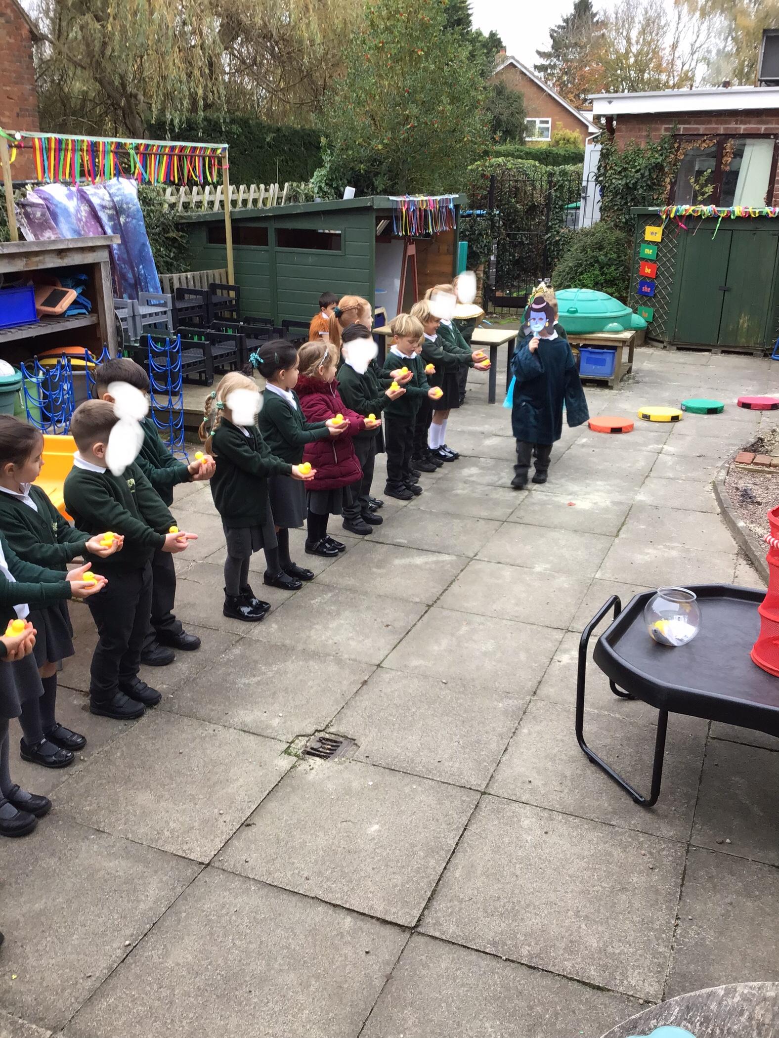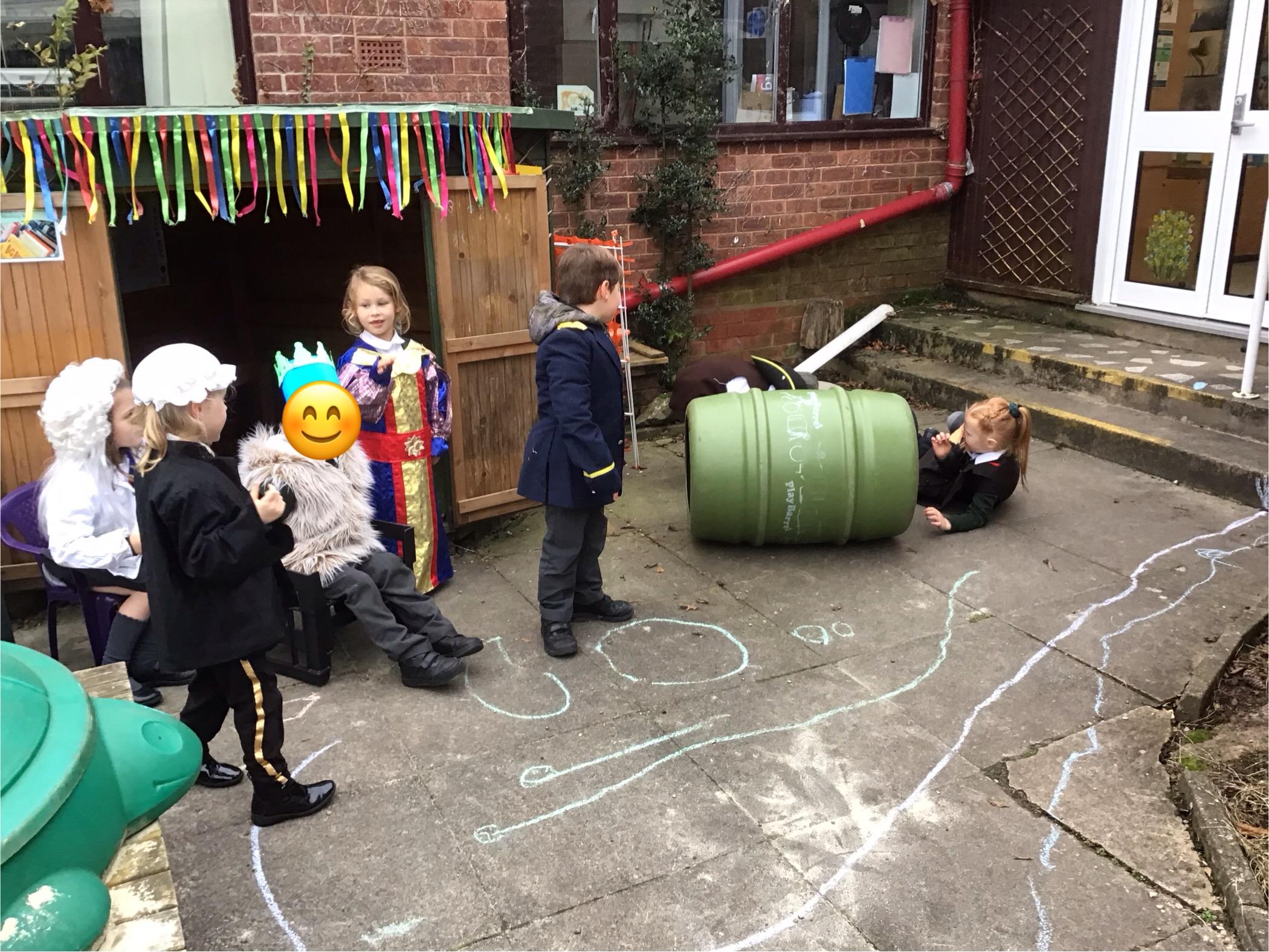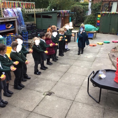 We learnt all about Bonfire night. We heard the story of Guy Fawkes and his failed plot to blow up the Houses of Parliament with King James inside. The children acted this out beautifully! They also enjoyed making firework pictures with paint, pastels and loose parts.