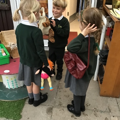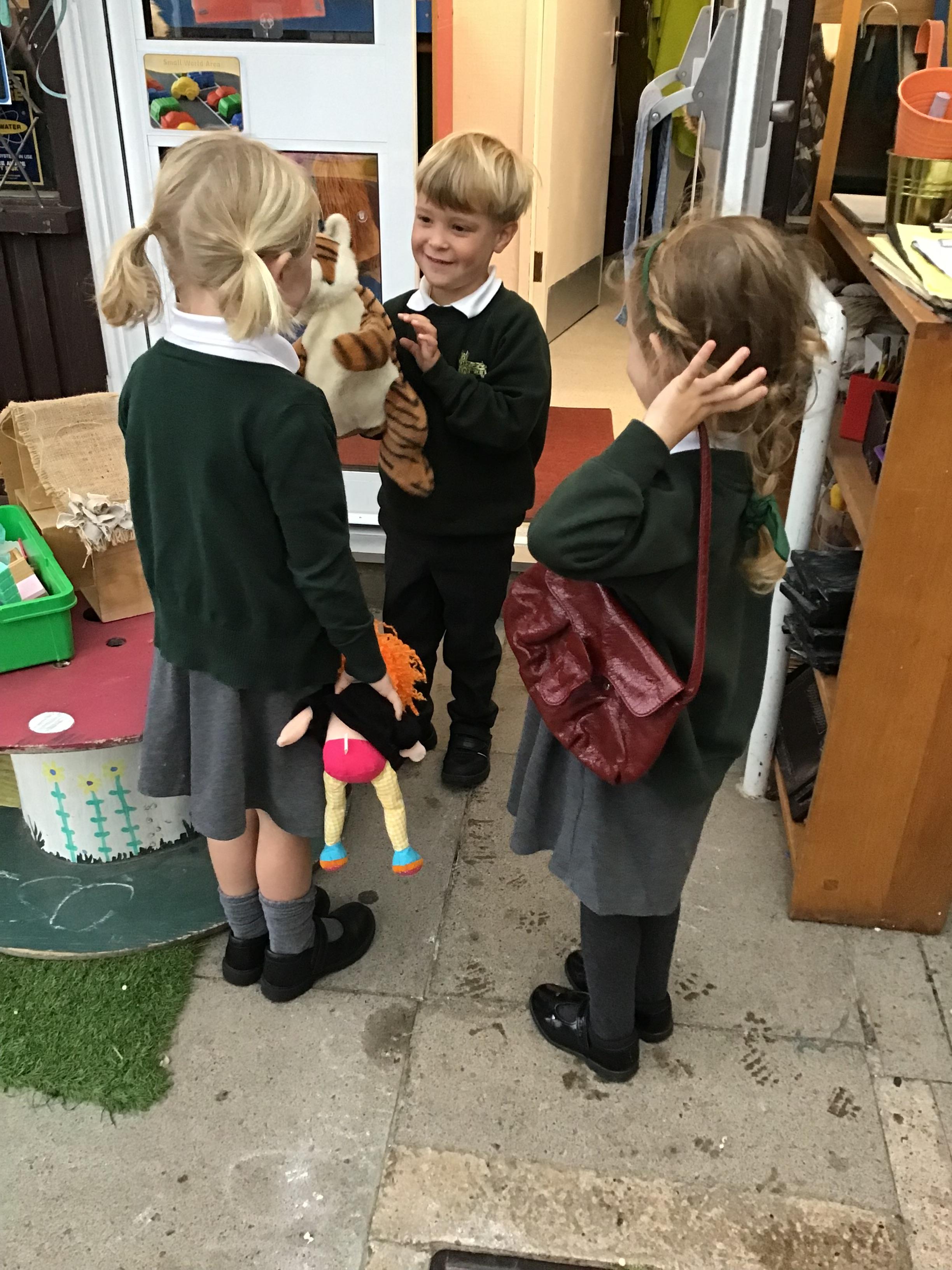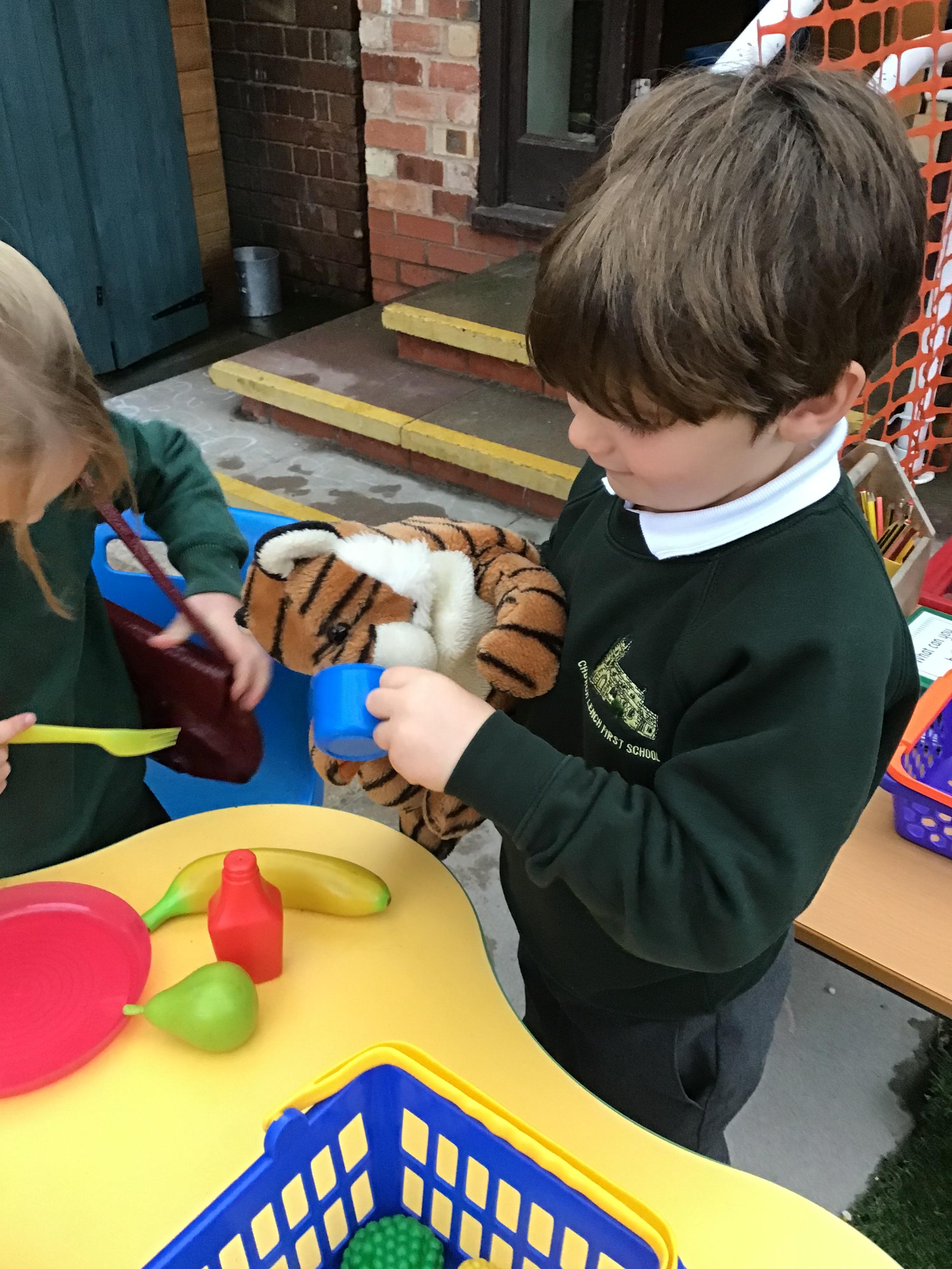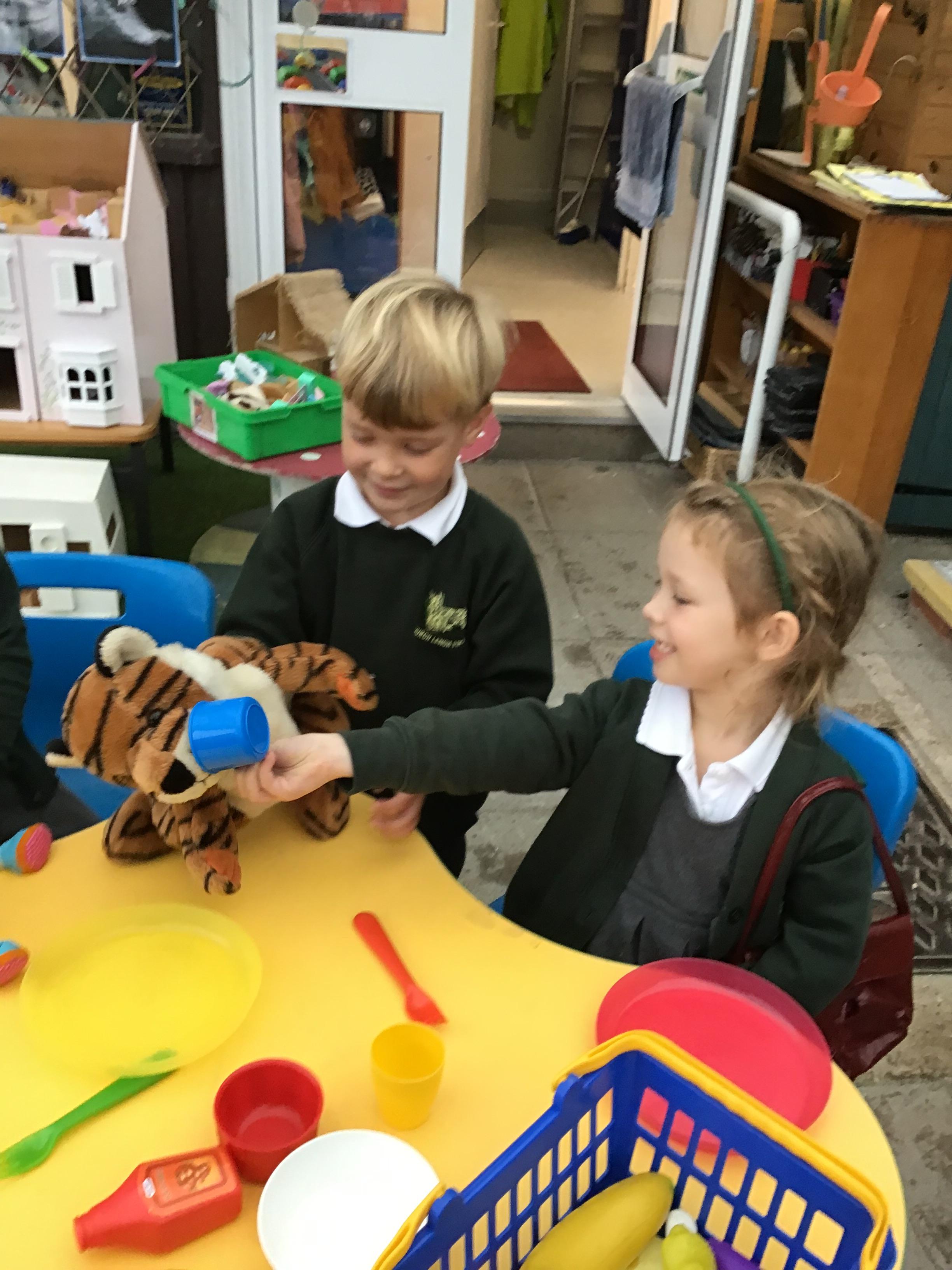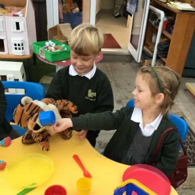 In our English lessons, we have read the story of 'The Tiger Who Came to Tea'. The children enjoyed acting out the story with their friends.