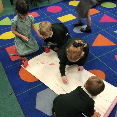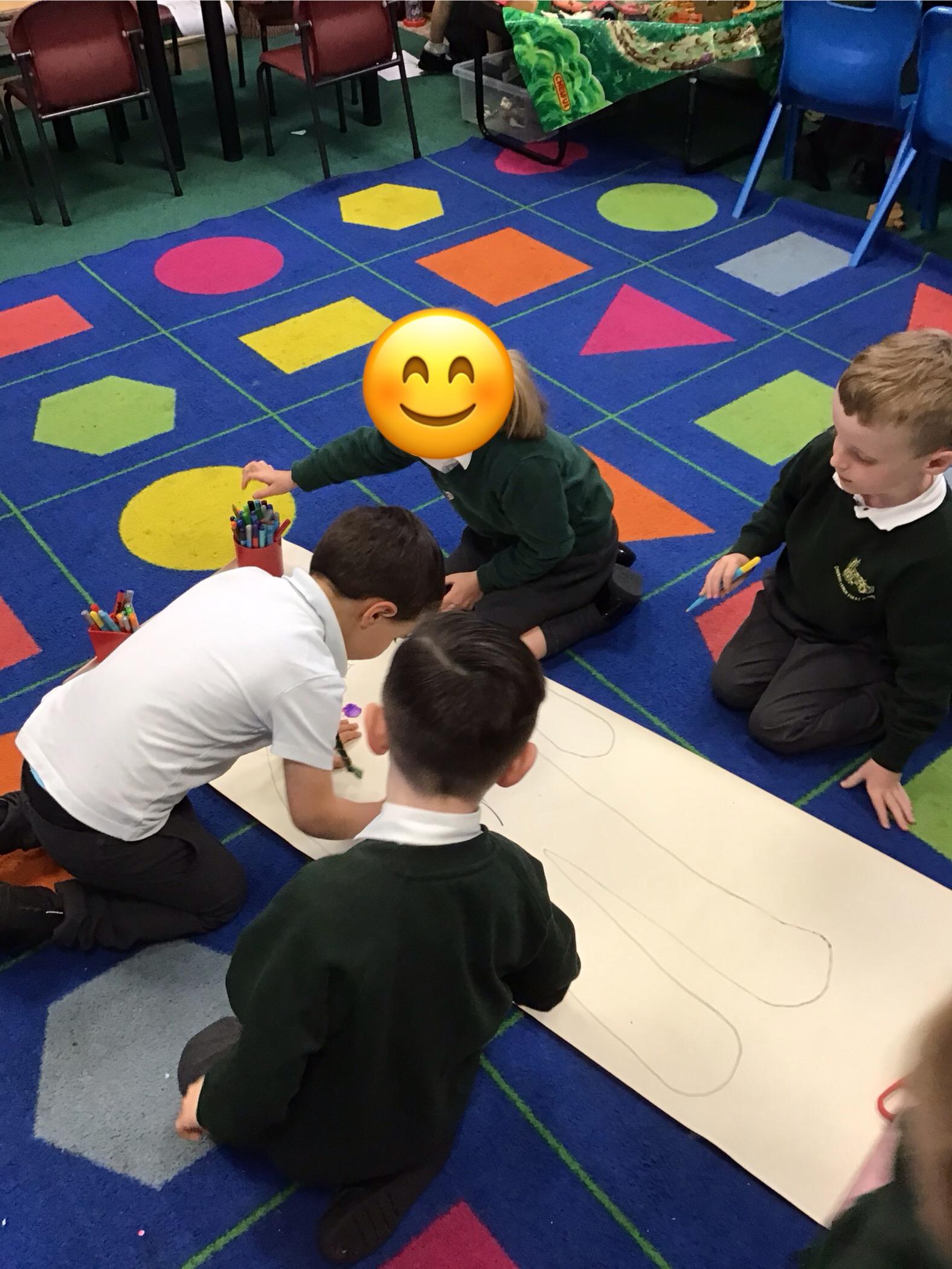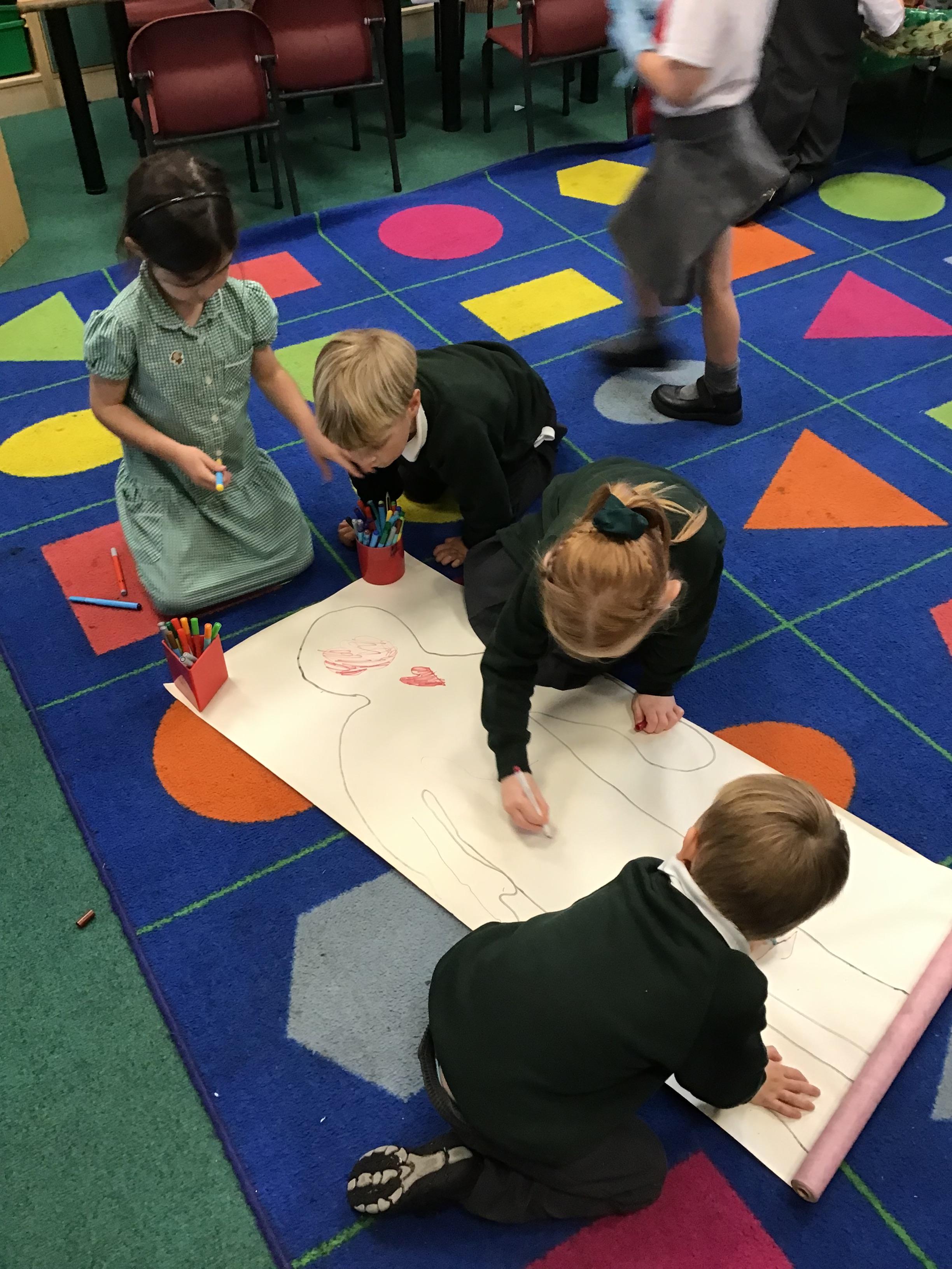 We have been learning about our bodies. We started off by naming body parts and then we thought about what is inside our bodies.