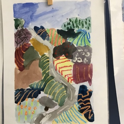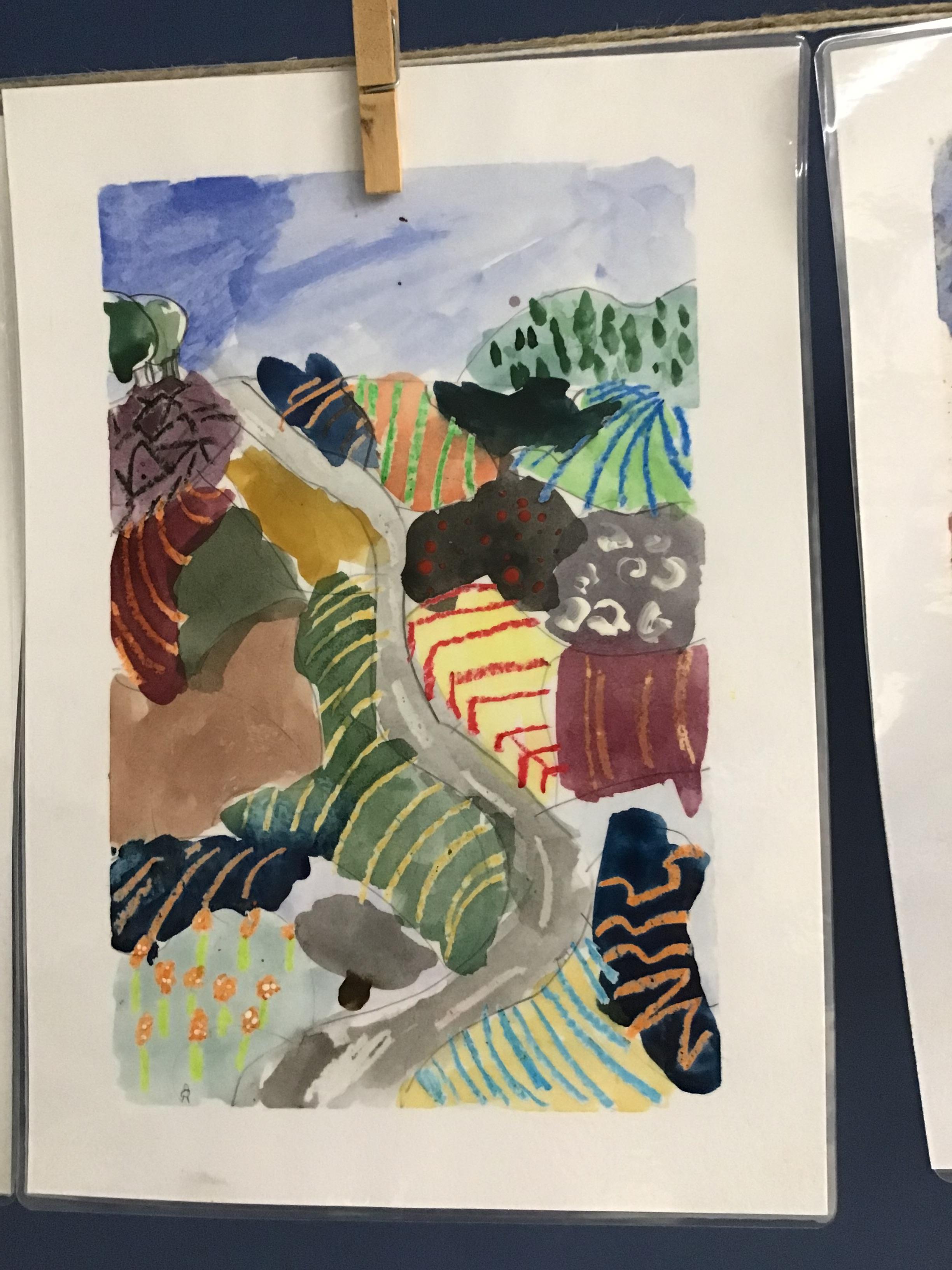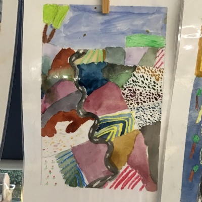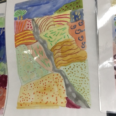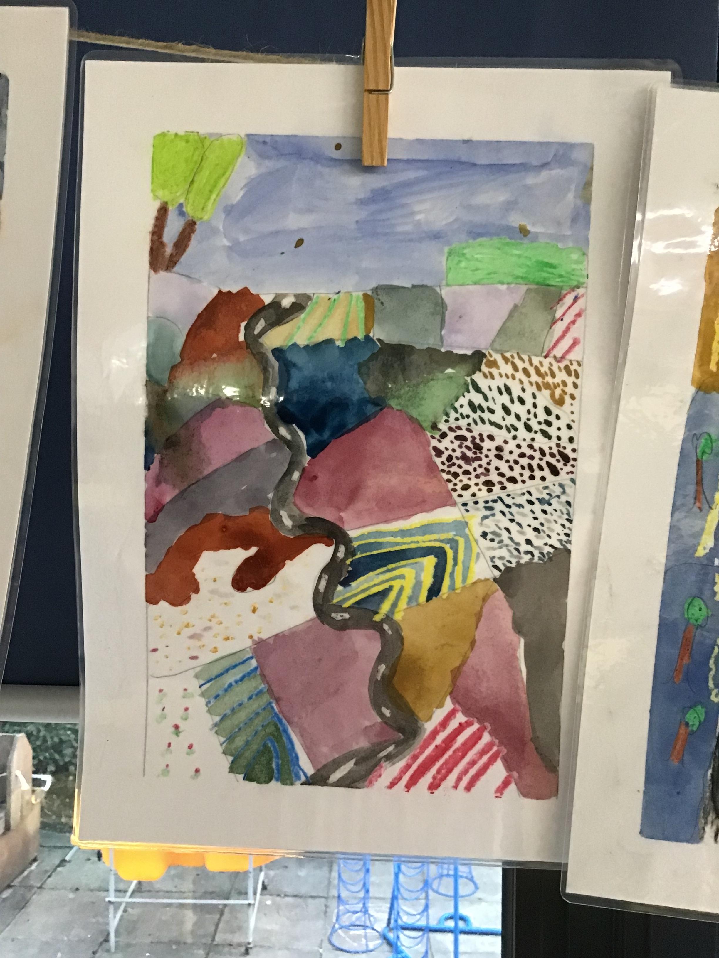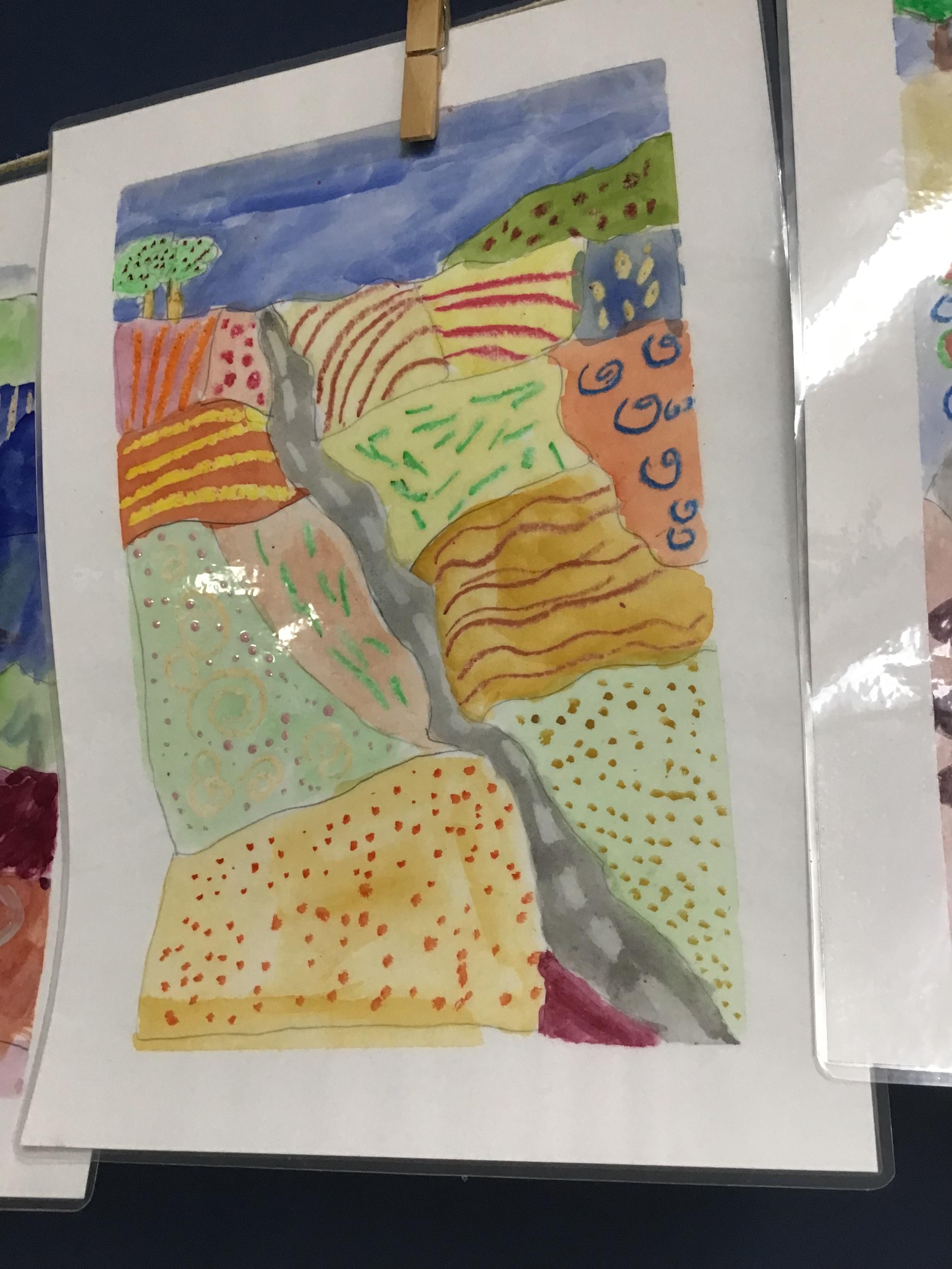 Some of the fabulous art work created by Class 3. These landscapes are based on the work of David Hockney.