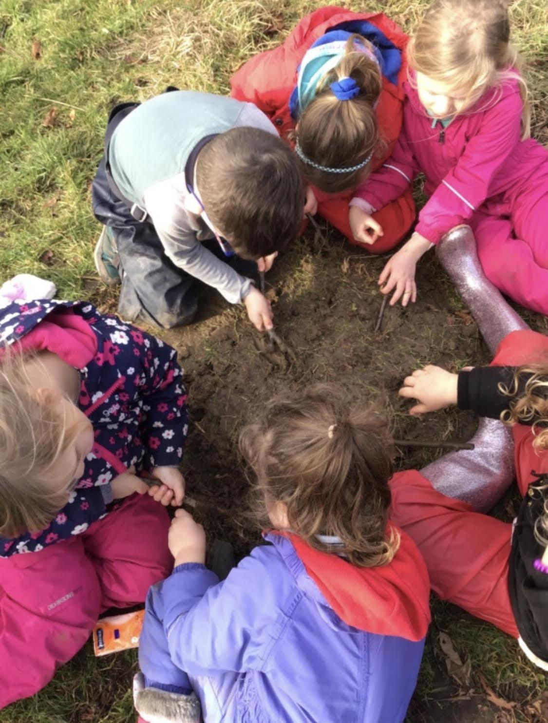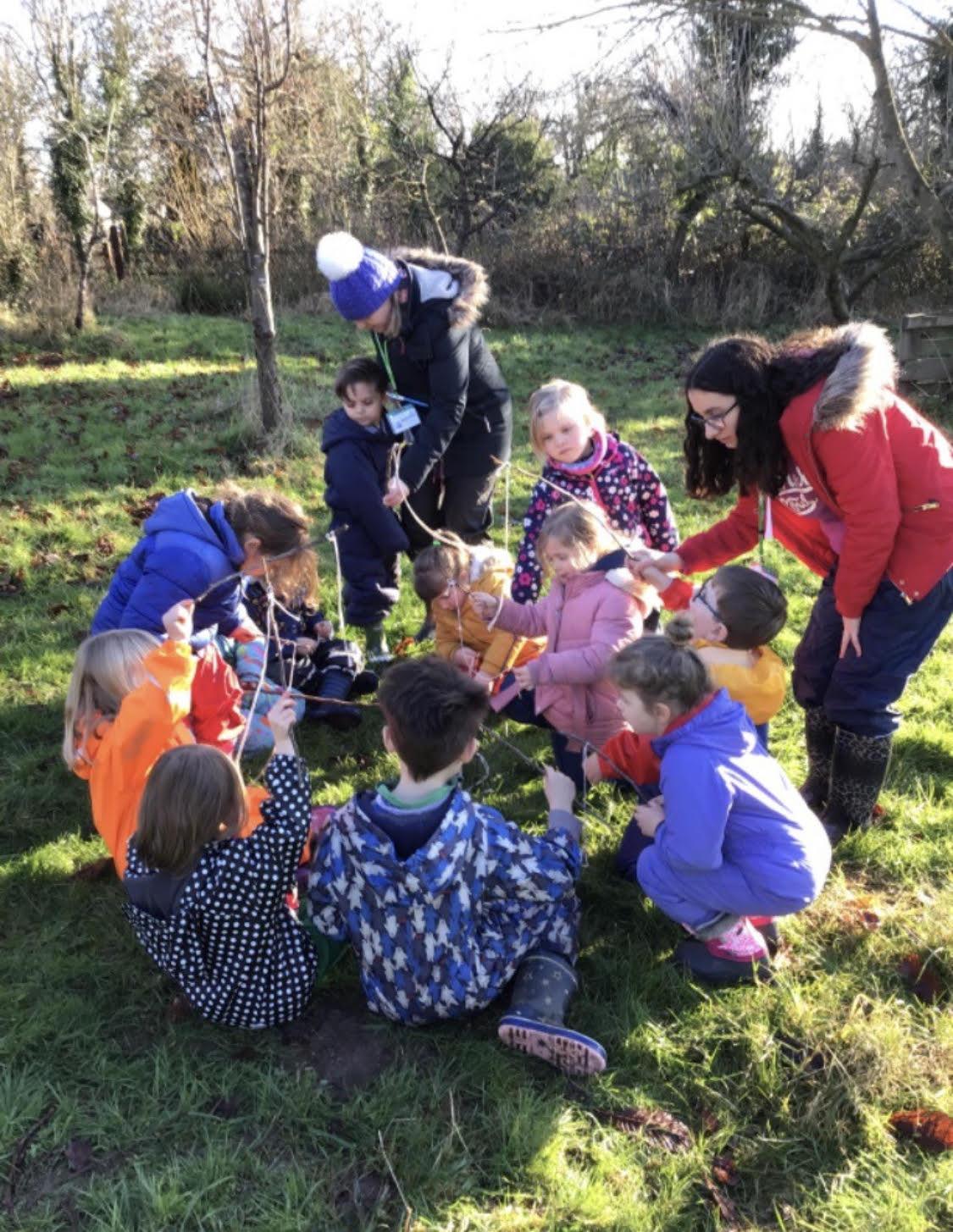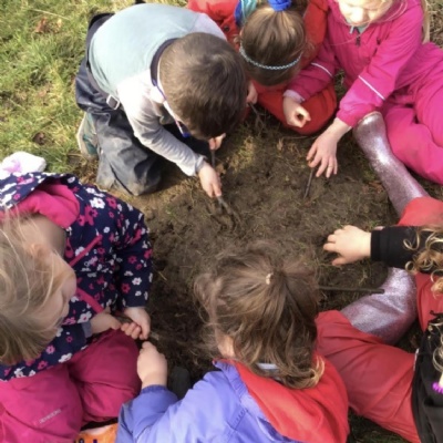 We are very fortunate to have use local The Yeate’s Community Orchard which is only 5 minutes walk from the school. The orchard provides safe and enhanced environment to learn and explore. Areas for den building and fire pit, playing in the mud kitchen and exploring the woodland area, looking for mini beasts and other wildlife, helping to gain self-esteem and developing confidence and allowing the children to develop without the constraints of the classroom.