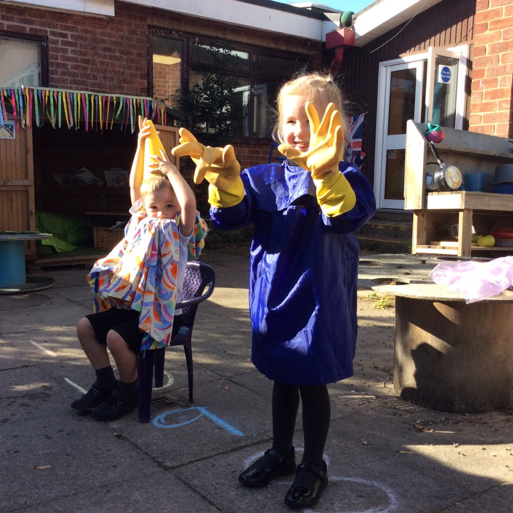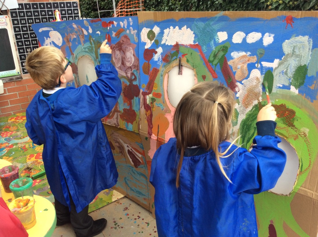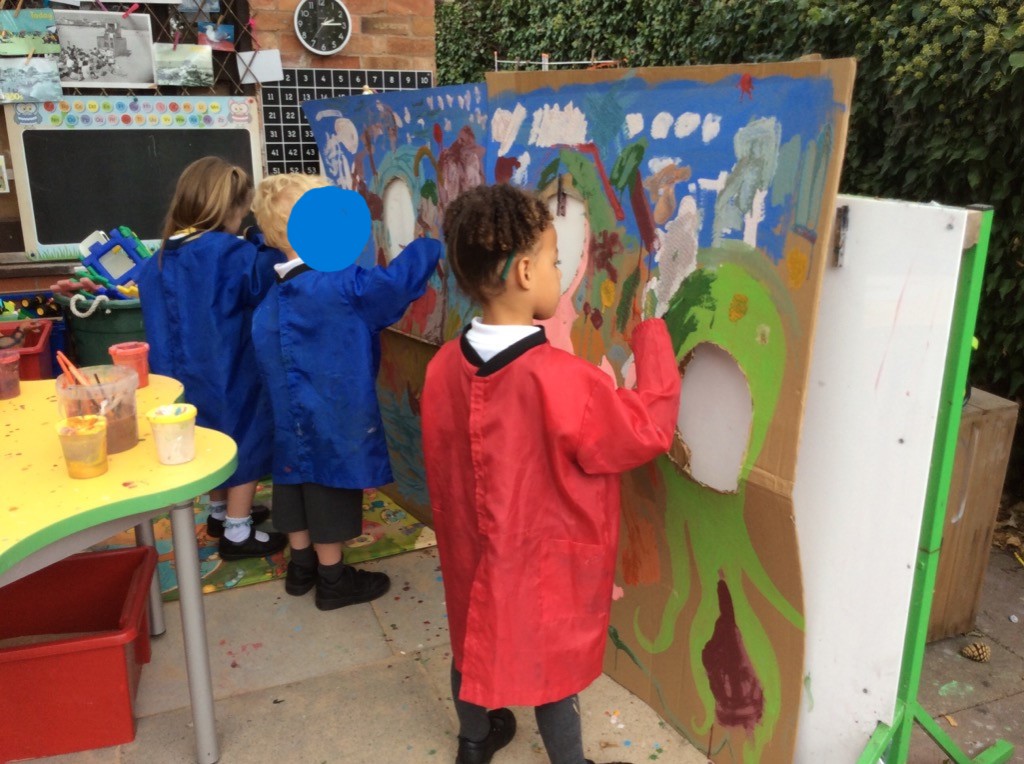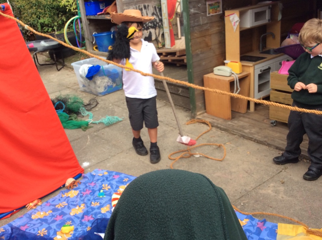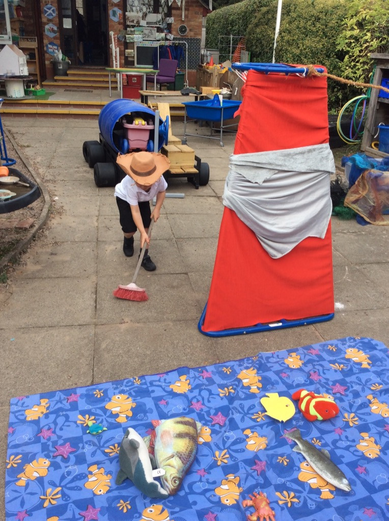 In our history lessons, we learnt about seaside holidays in the past. We looked at how people in the past spent their time at the seaside. We played at dressing up in a bathing machine, taking a steam train to the seaside, riding donkeys on the beach and painting a scene to have our picture taken with.