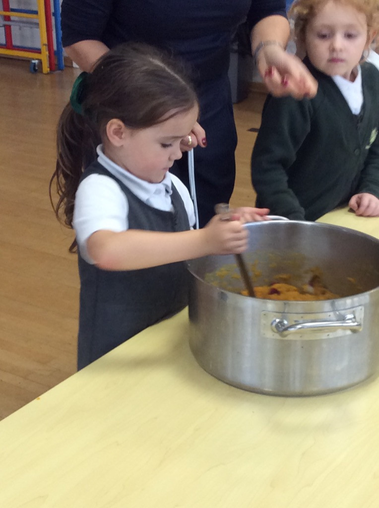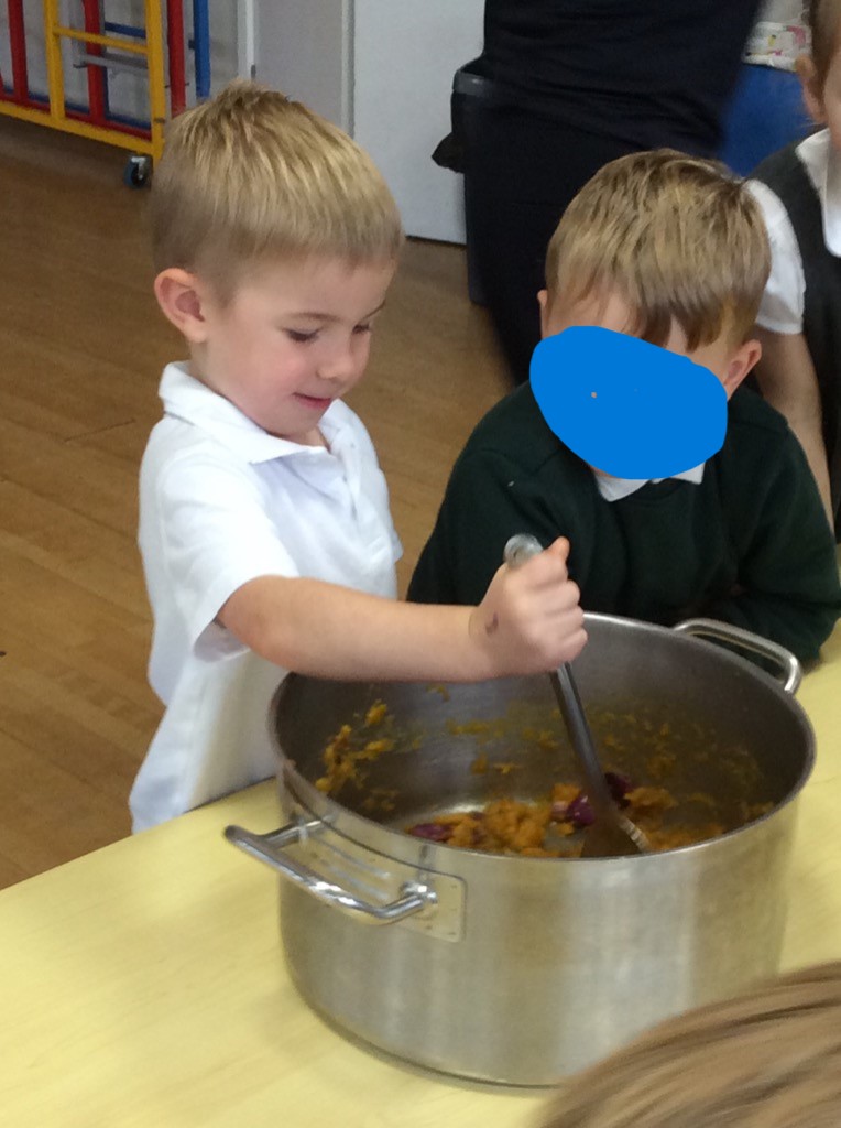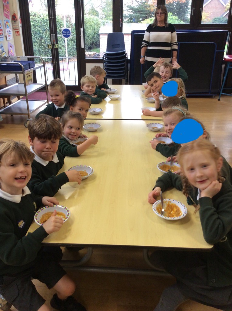 On 17th October we had a whole day to explore design and technology. We learnt about the difference between fruit and vegetables and read the story of 'Pumpkin soup'. We learnt how to chop up vegetables by practising using playdough first. We then chopped up some pumpkin and cooked it to our recipe, with the help of Debbie the school cook. After it was blitzed, we couldn't wait to try it! It was delicious! Thanks to all of the helpers who made this work possible :)