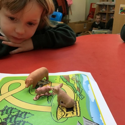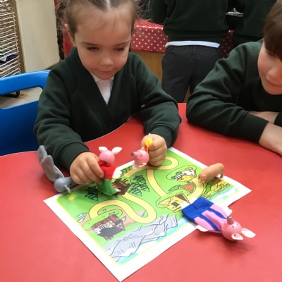 We have enjoyed learning the 'Traditional Tale' of 'The Three Little Pigs' in class. We have acted out the story, retold it and even written it down. We have very much enjoyed reading the alternative story called 'The Three Little Wolves and the Big Bad Pig!'.