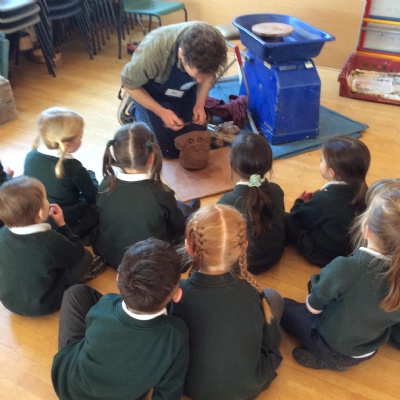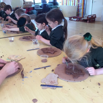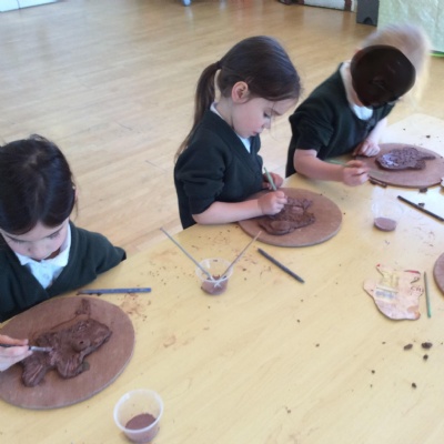 We had a visit from Jon the Potter on Tuesday (18th March) who told us all about clay. We had a go at flattening, cutting, decorating and painting our own fish. It was a lot of fun!