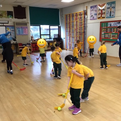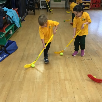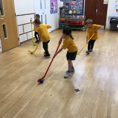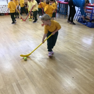 In our games lessons with our sports coaches, we have been learning hockey skills. It is a bit tricky but lots of fun!