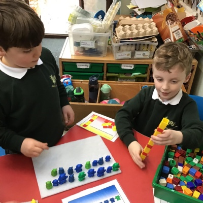 The children in reception have been practising their repeated patterns using lots of different resources.