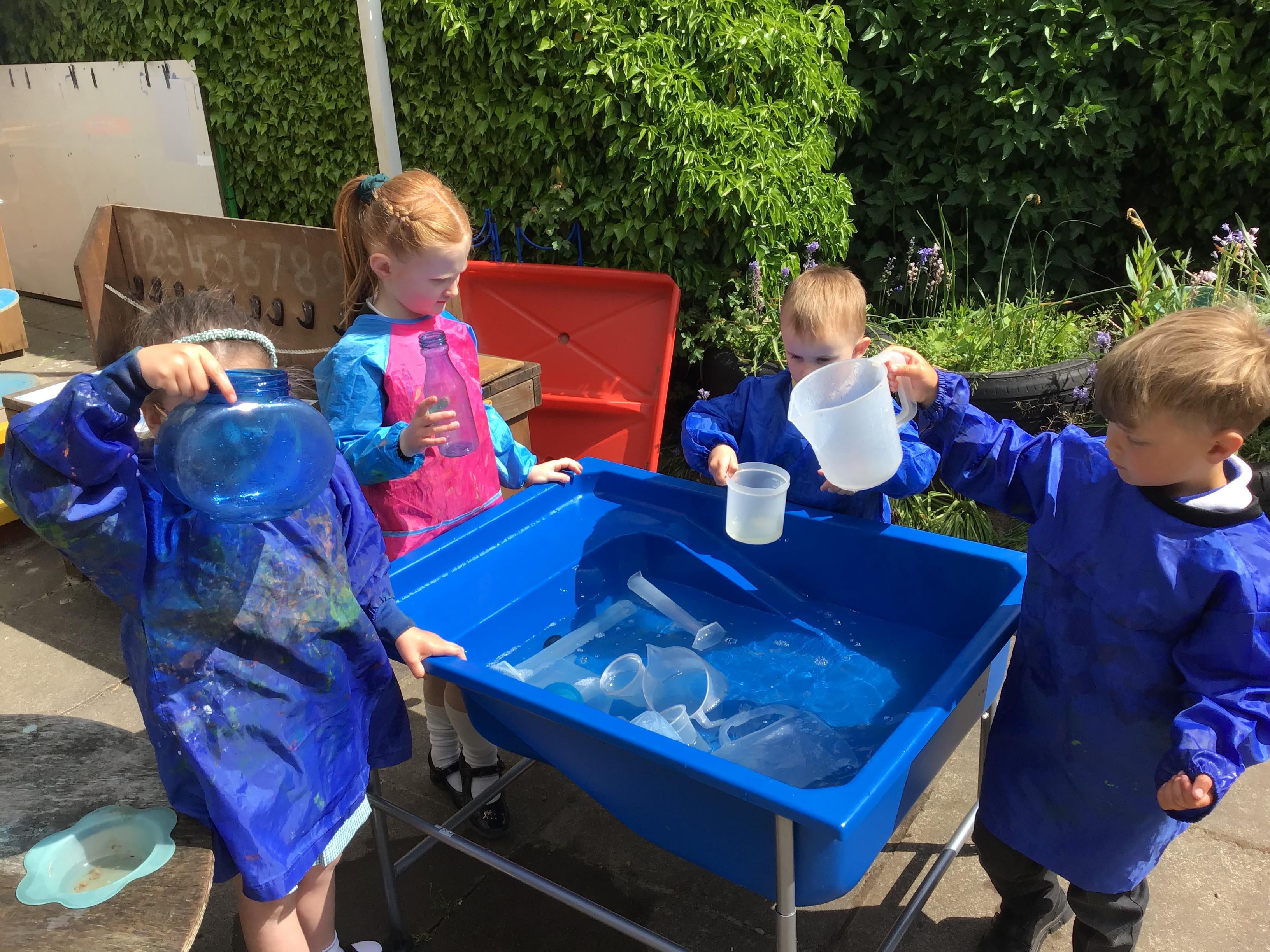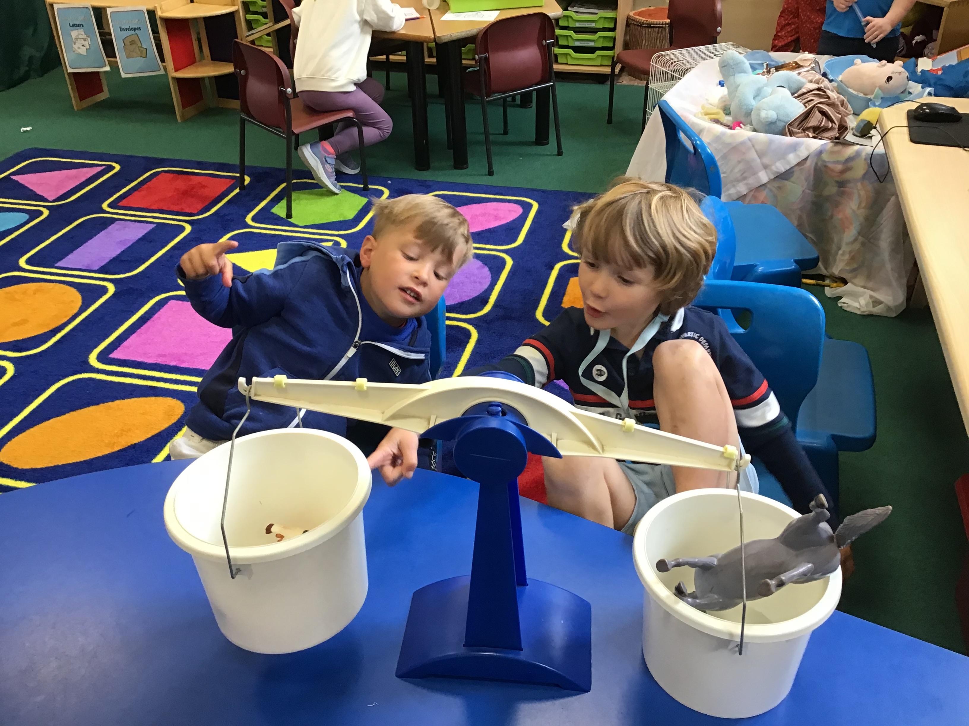 We have very much enjoyed all of the sunny weather to play and learn outside. We loved learning about capacity and measuring weight.