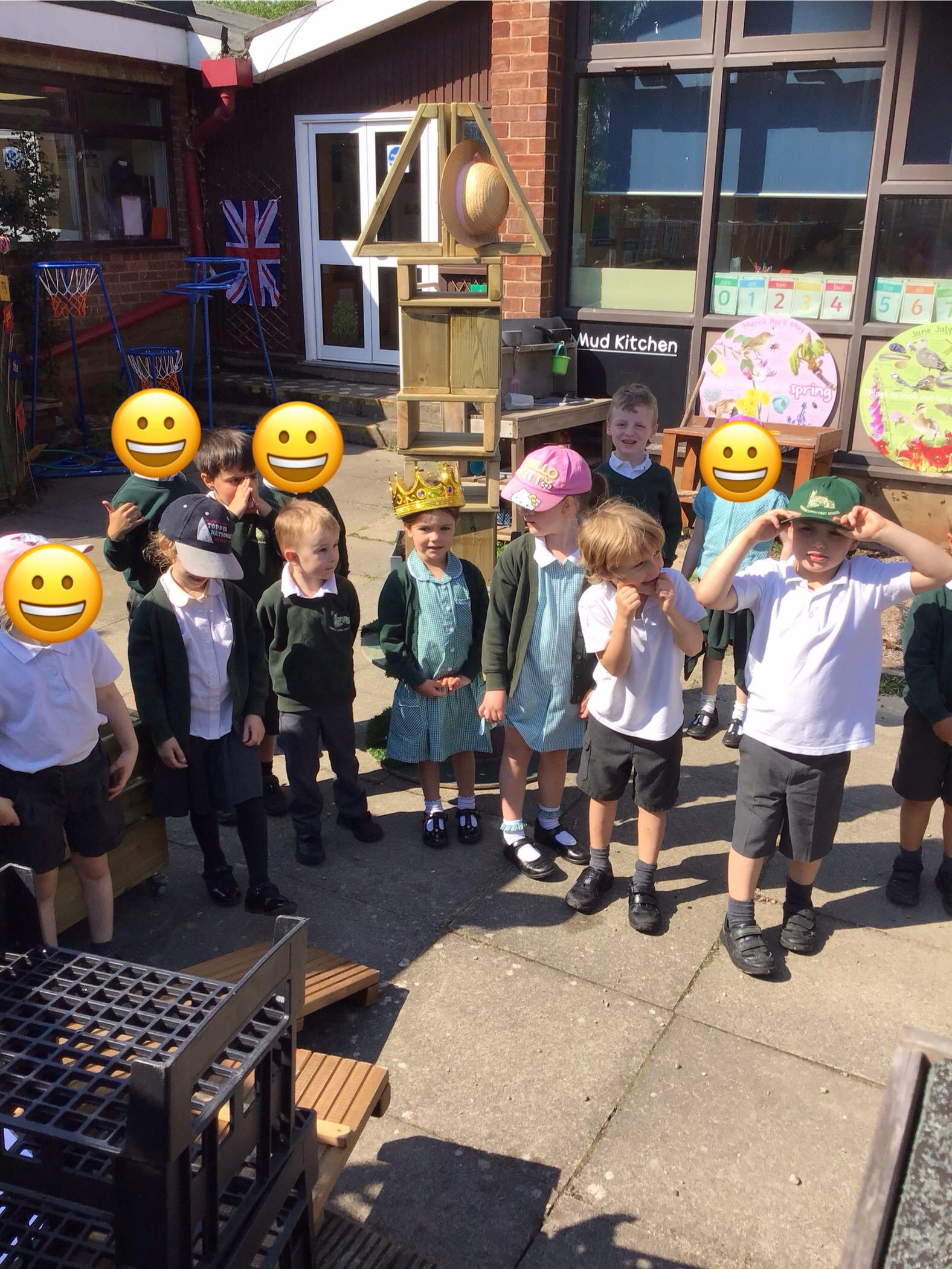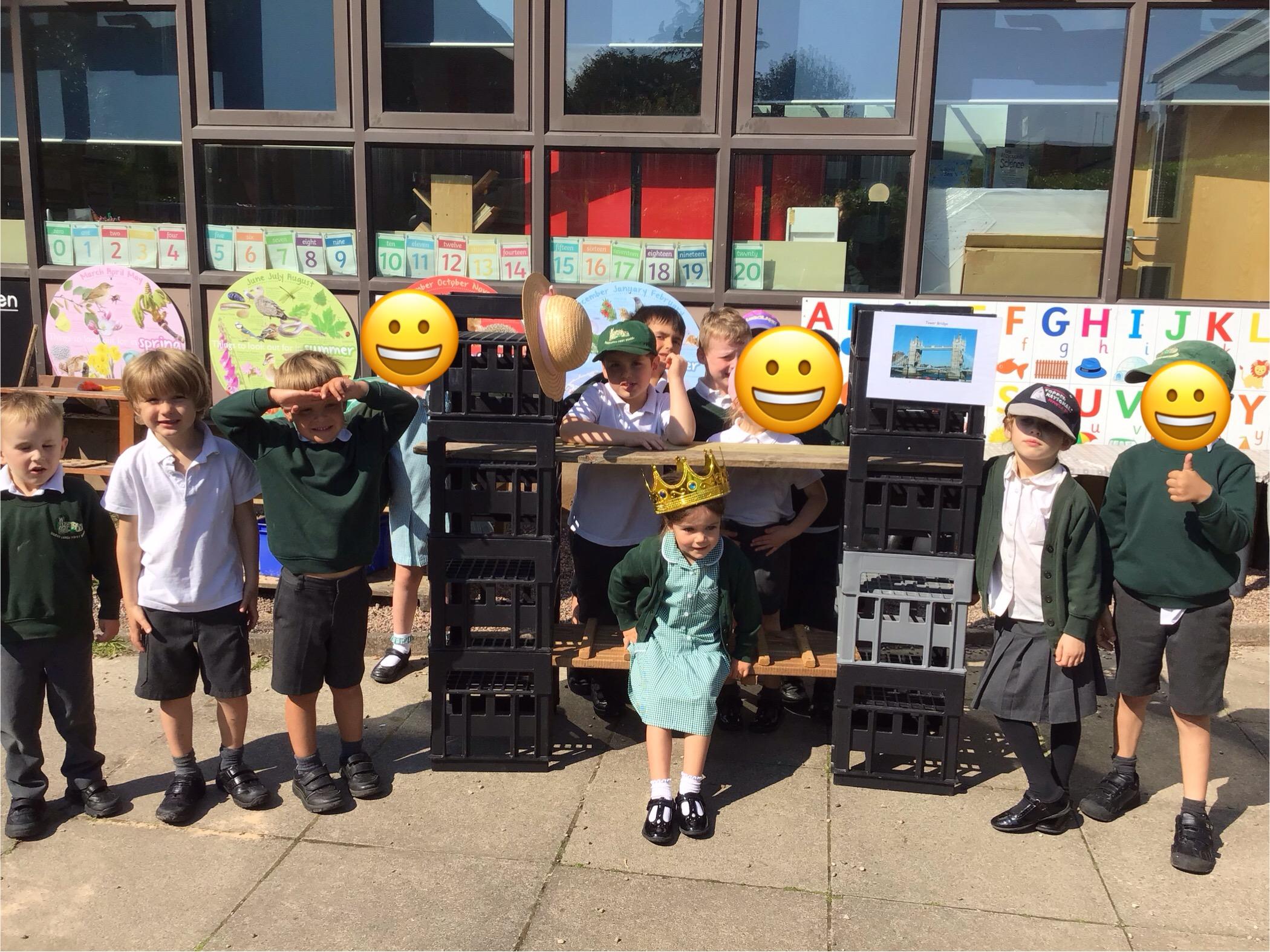 We read a story called 'The Queen's hat' where the Queen lost her hat in a big gust of wind. Her hat travelled all around London visiting all of the famous landmarks. We retold the story and built some of the landmarks with our friends. Can you spot Tower Bridge, an underground train and Big Ben?